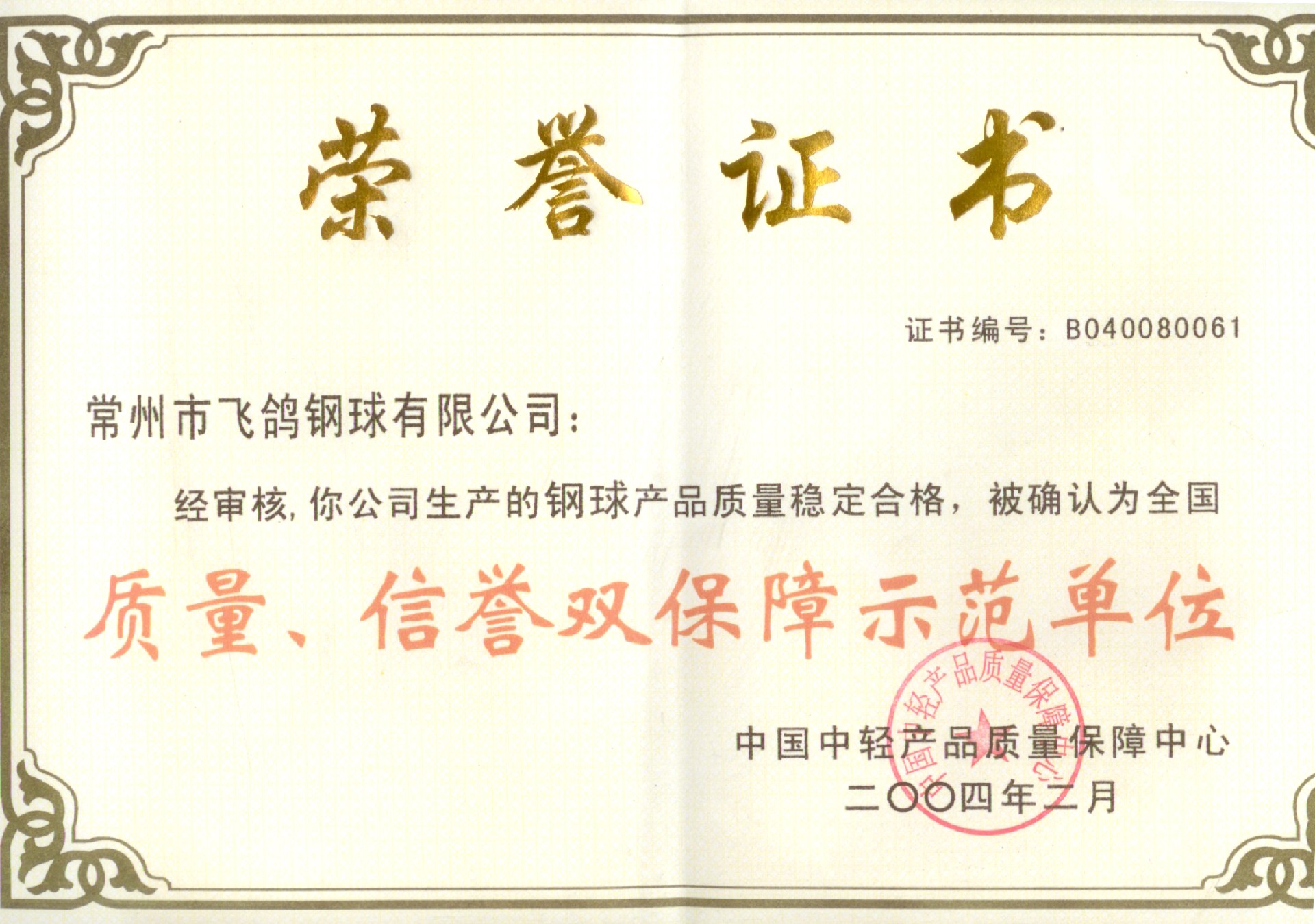 自公司創建以來,一直堅持科學管理,優質求實,服務顧客,持續改進的質量方針,以服務為導向,崇尚安全第一、品質至上、客戶為尊,多年來,飛鴿鋼球已成為國內外廣大客戶信賴的產品。