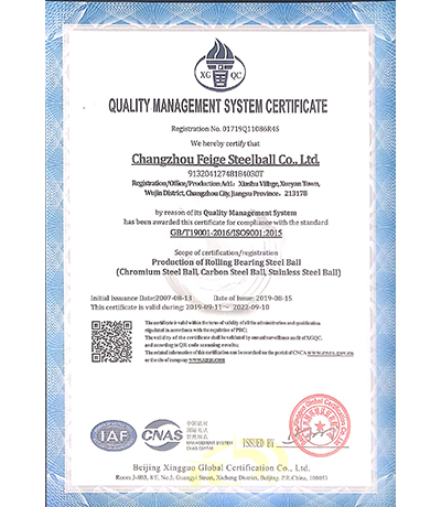 本公司現擁有專業技術人員30余名,有各種專用鋼球檢測設備五十余臺套,為穩定產品質量,現已通過ISO9001質量體系認證以及IATF16949國際汽車工作組認證。