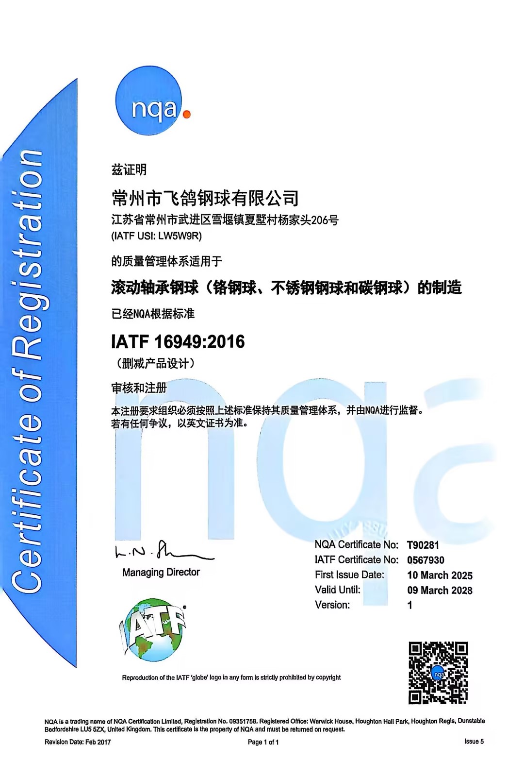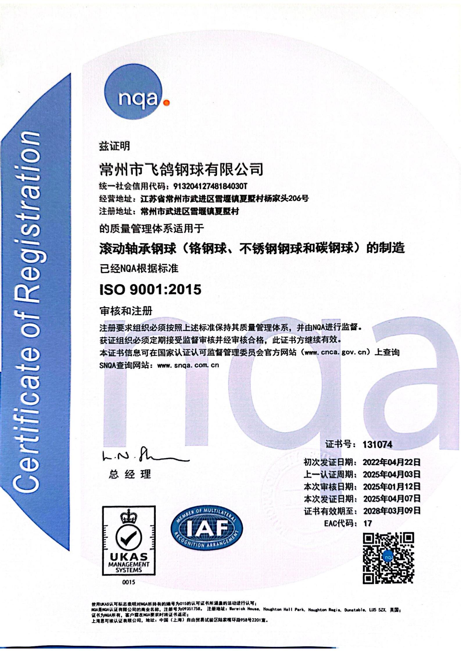 重磅喜訊!飛鴿鋼球順利通過雙體系認證,品質與責任再升級